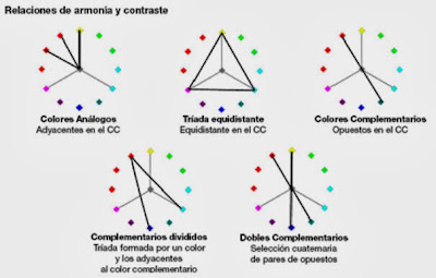El círculo cromático es una valiosa herramienta para determinar armonías de color. Los colores complementarios son aquellos que se contraponen en dicho círculo y que producen un fuerte contraste. Así, por ejemplo, en el modelo RYB, el verde es complementario del rojo, y en el modelo CMY, el verde es el complementario del magenta.